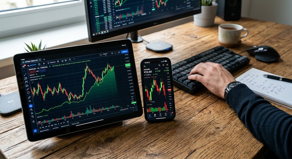 - Integroitu kaupankäynti: Osto ja myynti suoraan kurssinäkymästä.